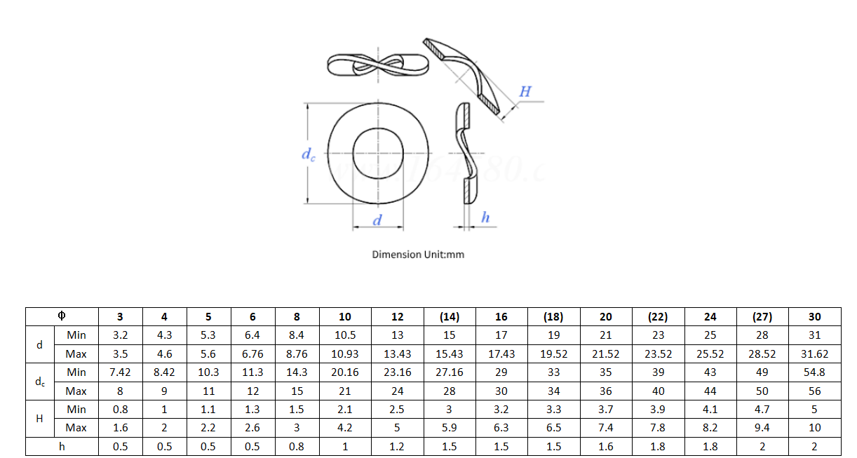 Ez a termék egy hullámrugós alátét, amely megfelel a GB/T 955-1987 szabványnak, és kifejezetten nagy igénybevételű csatlakozási forgatókönyvekhez készült, például nehéz gépekhez, autókhoz és elektromos berendezésekhez, amelyek rezgést és ütést tapasztalnak. A termék maganyaga 65Mnrugós acél. Hullámos kialakítása és a kiváló minőségű rugóacél nagy rugalmassága tartós és megbízható kilazulásgátló reteszelő képességet biztosít folyamatos vibrációs környezetben, kiváló rezgés- és fáradásgátló teljesítménnyel.