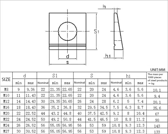 | Név | Egyetlen horony négyzet alakú kúpos alátét |