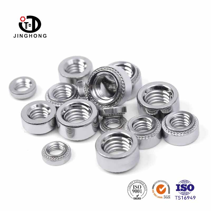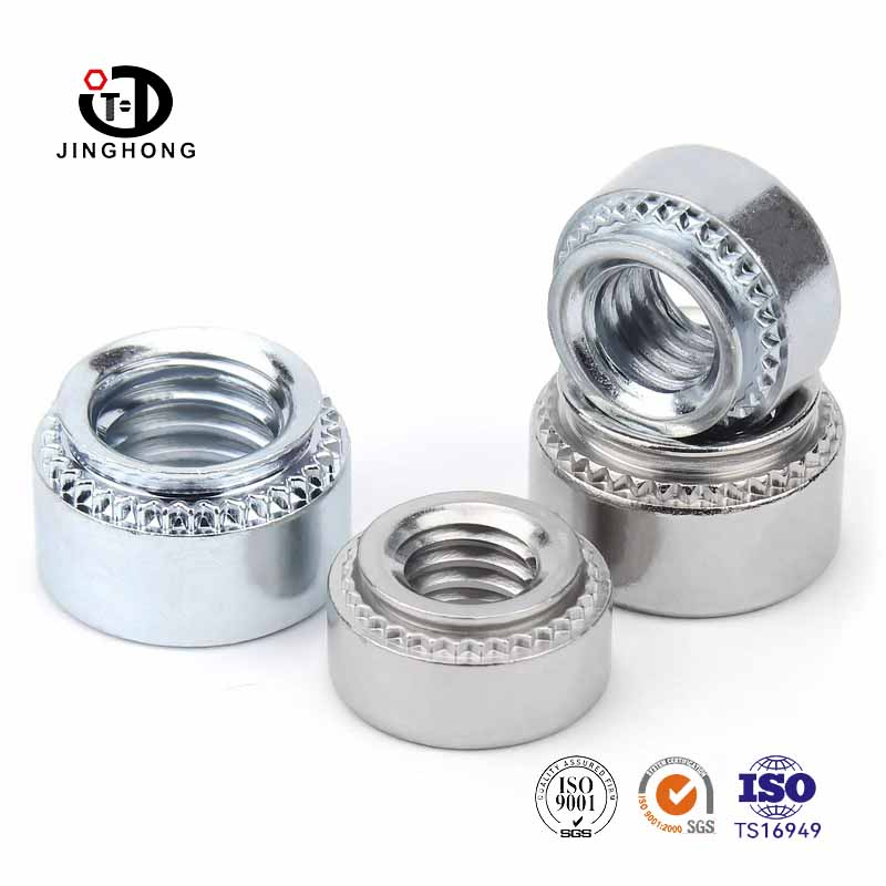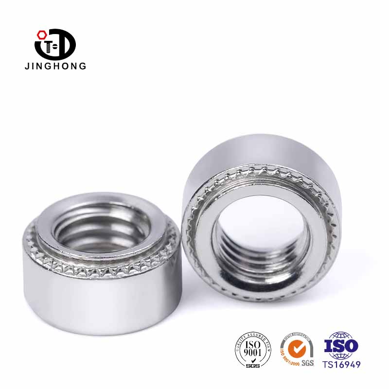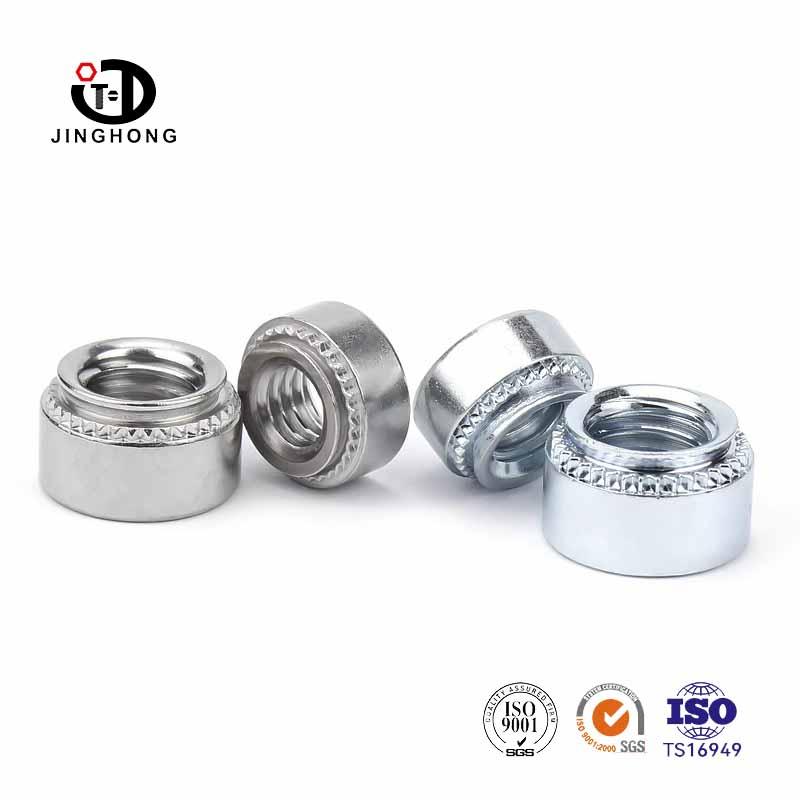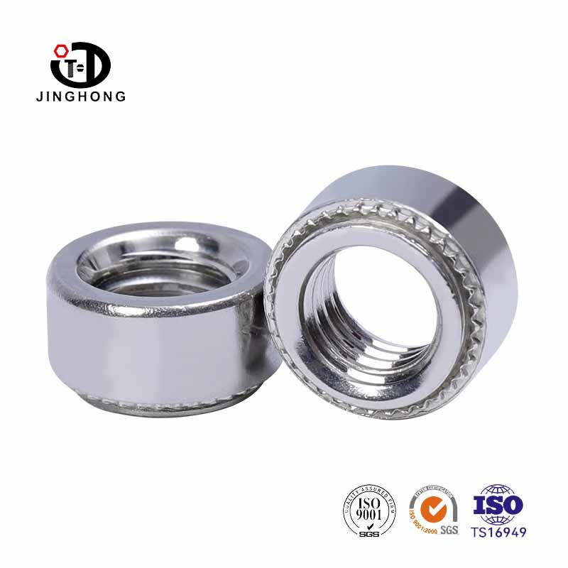 A jinghong rögzítők kiváló minőségű rozsdamentes acélból és ötvözött acélból készülnek, így a PEM anya kiváló korrózióállósággal, szilárdsággal és keménységgel, durva és nehéz vagy magas hőmérsékletű környezethez alkalmas. A PEM anyát a jó merevség és stabilitás érdekében tervezték a sajtó szegecselési folyamat során.